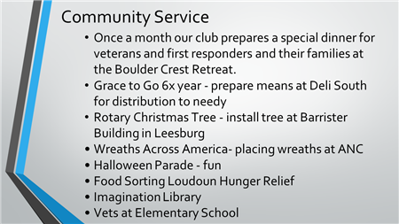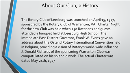 Welcome to the Rotary Club of Leesburg. Here is everything, (almost) you ever wanted to know about our Club and Rotary.